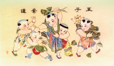 二是春節(jié)藝術(shù)。春節(jié)是盛大的傳統(tǒng)藝術(shù)節(jié),藝術(shù)類春節(jié)非遺有數(shù)百項(xiàng)。我們進(jìn)入春節(jié)就是進(jìn)入了藝術(shù)時空,大紅的春聯(lián),喜慶熱鬧的年畫,鑼鼓喧天的年戲,高聳的臺閣,詭異奇幻的臉譜,翻騰的龍獅舞,美妙的管樂與弦樂等等,讓人沉醉。如木版年畫是春節(jié)的傳統(tǒng)美術(shù),天津楊柳青、蘇州桃花塢、四川綿竹、河北武強(qiáng)是四大非遺木版年畫產(chǎn)地,都以精美的色彩構(gòu)圖與吉祥寓意烘托了春節(jié)的紅火氣氛。元宵的燈會燈彩是春節(jié)藝術(shù)最后的精彩展示,如秦淮燈彩、洛陽宮燈、北京燈彩都是國家級非遺。