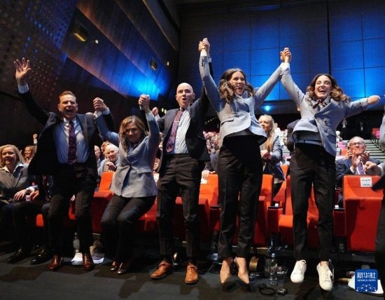 這是2024年7月24日,在巴黎進行的國際奧委會第142次全會上,美國鹽湖城代表團成員慶祝獲得2034年冬奧會舉辦權(quán)。新華社記者 孫非 攝
