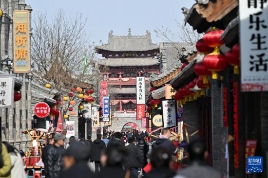 2月20日,游人在忻州古城游覽。