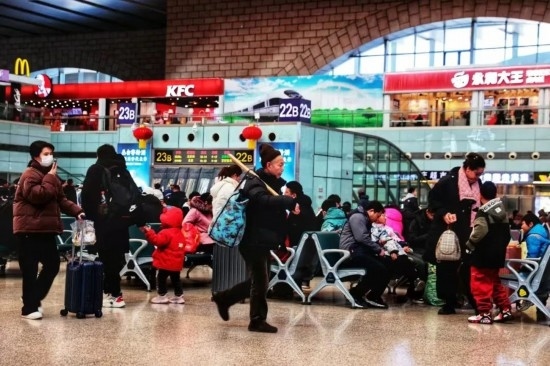 2月5日迎來返程高峰,邯鄲站內的旅客依次檢票進站。