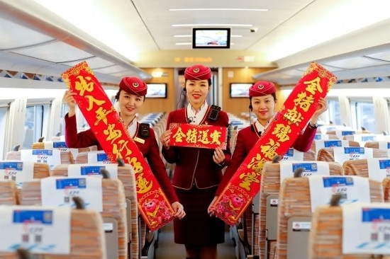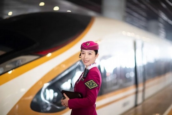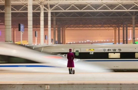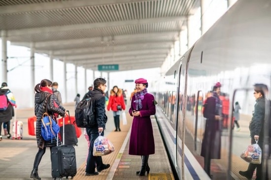 2018年春運,完成值乘任務的復興號列車長開心退乘。