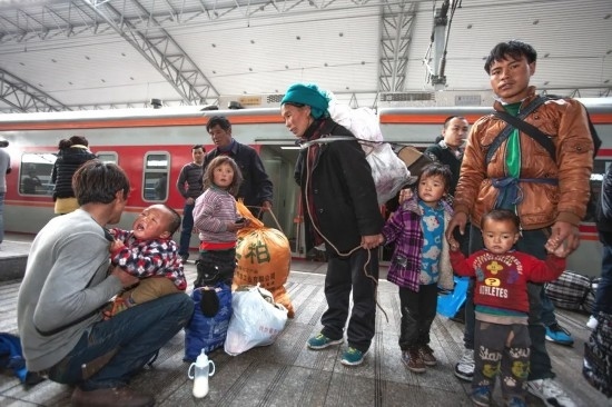 2015年,一對老兩口乘坐高鐵到北京與兒子過團圓年,實現反向春運。