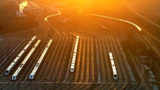 除夕當天,石家莊動車運用所被金色的晨曦照亮。