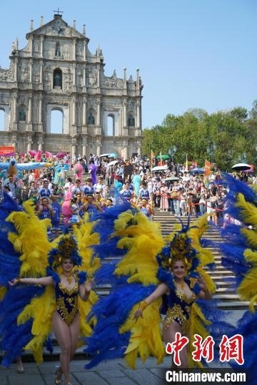 3月23日,“2025澳門國際幻彩大巡游”啟動,近1800人的巡游團隊帶著精彩表演從大三巴牌坊前出發(fā),穿越澳門歷史城區(qū)的舊街老巷,為沿途市民與游客呈獻(xiàn)精彩的文化交流盛宴。 中新社記者 鄭嘉偉 攝
