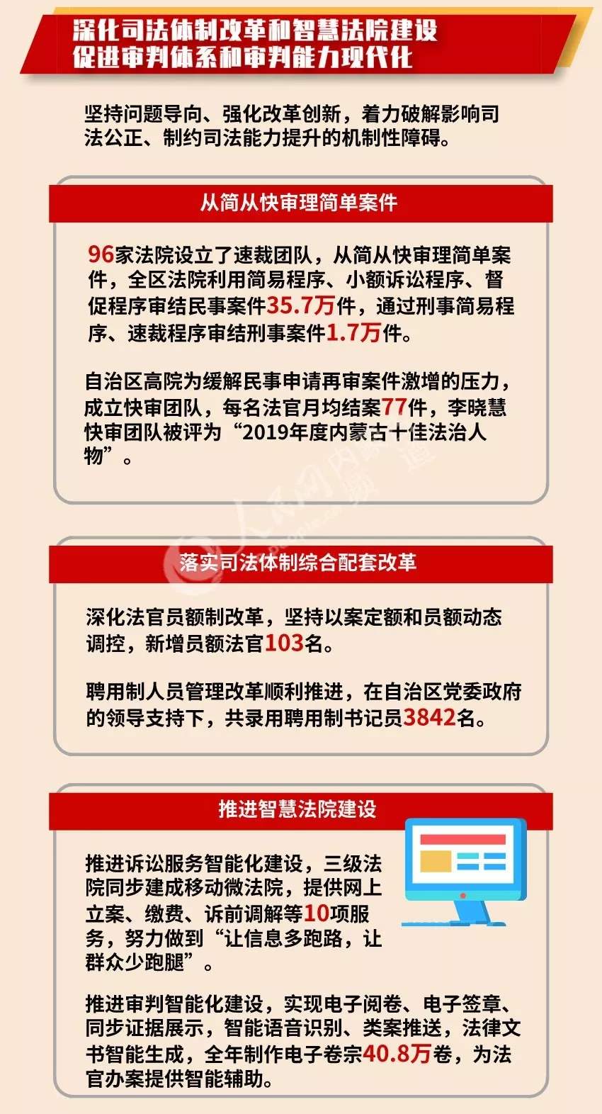 會上,內(nèi)蒙古自治區(qū)高級人民法院院長楊宗仁作《內(nèi)蒙古自治區(qū)高級人民法院工作報(bào)告》,內(nèi)蒙古自治區(qū)人民檢察院檢察長李琪林作《內(nèi)蒙古自治區(qū)人民檢察院工作報(bào)告》。“兩院”工作報(bào)告都有哪些看點(diǎn)?今年兩會,小編繼續(xù)帶您看圖說兩會。