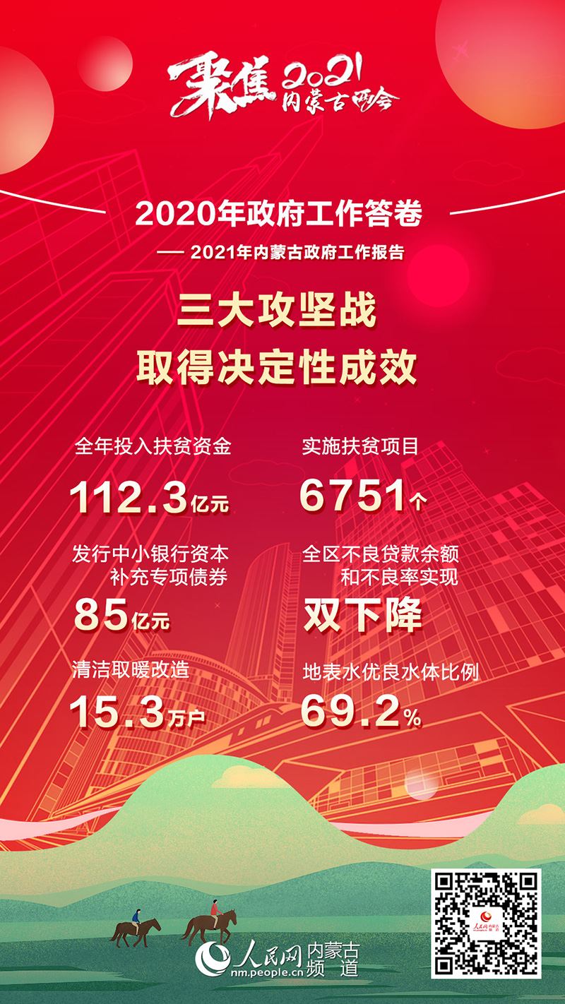 1月26日上午,內(nèi)蒙古自治區(qū)十三屆人大四次會議在內(nèi)蒙古人民會堂開幕。自治區(qū)主席布小林作政府工作報告。2020年是極不平凡的一年,內(nèi)蒙古緊扣全面建成小康社會目標任務,堅持穩(wěn)中求進工作總基調(diào),堅持以人民為中心,科學統(tǒng)籌疫情防控和經(jīng)濟社會發(fā)展,扎實做好“六穩(wěn)”工作,全面落實“六?!比蝿?,全區(qū)經(jīng)濟持續(xù)回穩(wěn),社會大局和諧穩(wěn)定,“十三五”規(guī)劃順利收官。2020年政府工作有哪些亮點?看內(nèi)蒙古書寫這份精彩答卷!