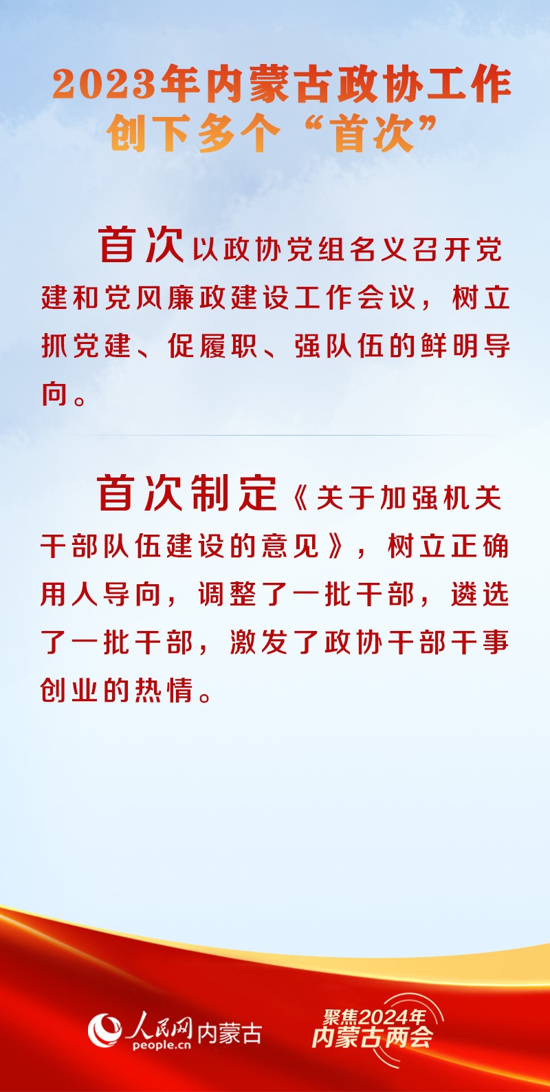 1月29日上午9時(shí),中國人民政治協(xié)商會(huì)議第十三屆內(nèi)蒙古自治區(qū)委員會(huì)第二次會(huì)議在內(nèi)蒙古人民會(huì)堂開幕。2023年,內(nèi)蒙古自治區(qū)政協(xié)堅(jiān)持以改革思維、創(chuàng)新理念、務(wù)實(shí)舉措推進(jìn)履職能力建設(shè),推出多項(xiàng)創(chuàng)新舉措,開創(chuàng)了新時(shí)代政協(xié)工作新局面。