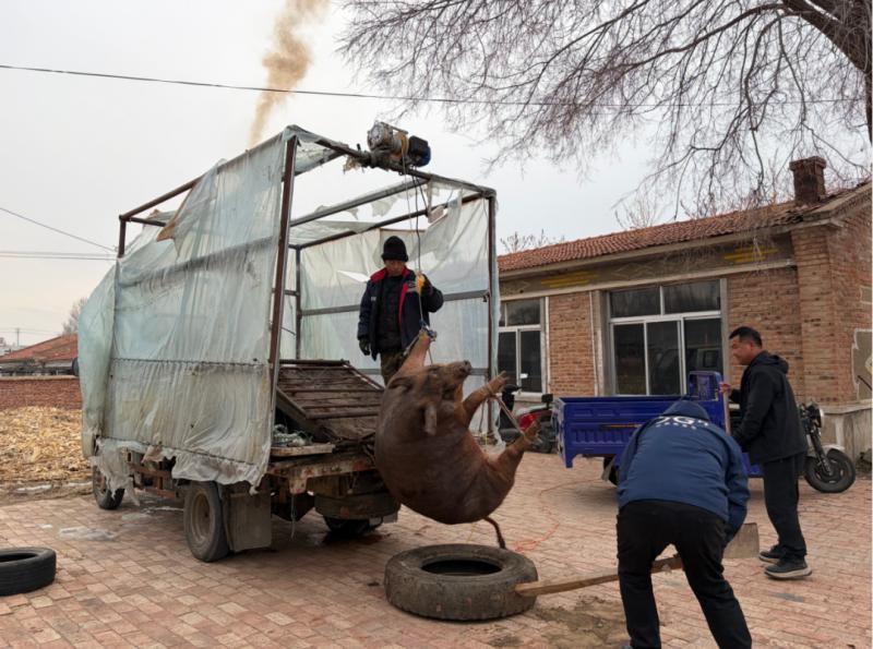 吃殺豬菜一向講求男女分工,家中的男子負(fù)責(zé)抓豬屠宰,女性們則負(fù)責(zé)后續(xù)的備菜烹煮工作。男人們穿上厚實的棉襖,呵著白氣走向豬圈,用早已準(zhǔn)備好的繩索,麻利地將豬的四肢捆扎結(jié)實。隨后,幾人合力將豬抬到宰豬的車上,王國春深吸一口氣,拿起殺豬刀,對準(zhǔn)豬的脖頸,動作干脆利落。鮮紅的豬血順著事先準(zhǔn)備好的大盆緩緩流淌,不一會兒就接了滿滿一盆。殺完豬,男人們顧不上休息,就趕忙用滾燙的開水給豬褪毛,鐵刮子在豬身上來回刮擦,發(fā)出“唰唰”的聲響,不一會兒,原本黑乎乎的豬就變得白白凈凈。緊接著,他們立刻將豬開膛破肚,把內(nèi)臟分門別類地整理好,豬頭、豬蹄也被仔細(xì)地清洗干凈,準(zhǔn)備著后續(xù)的處理?! ?/p>