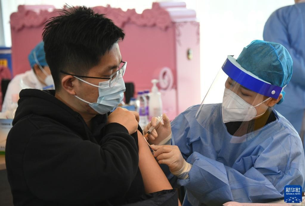 2021年12月7日,北京市海淀區(qū)上地街道組織醫(yī)護(hù)人員來到海國(guó)瑞業(yè)科技園,為園區(qū)內(nèi)的企業(yè)員工進(jìn)行新冠疫苗加強(qiáng)針接種。新華社記者 任超 攝