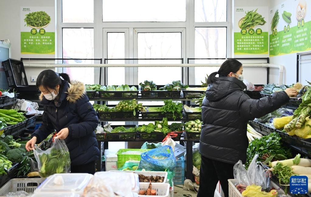 1月11日,居民在天津市西青區(qū)中北鎮(zhèn)一小區(qū)的商店內(nèi)選購蔬菜。新華社記者 李然 攝