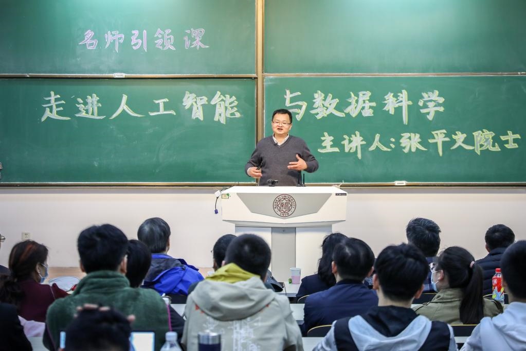 中國科學院院士張平文為南開學子講授“名師引領”通識課之“走進人工智能與數(shù)據(jù)科學”。(南開大學供圖)