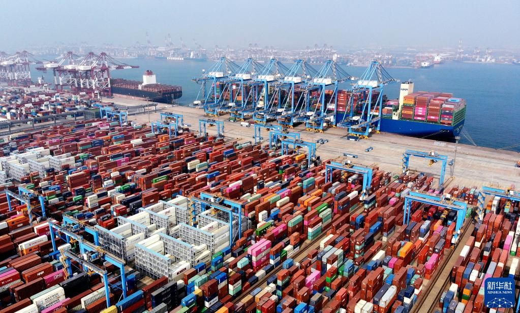 山東港口青島港前灣集裝箱碼頭(3月24日攝,無人機(jī)照片)。新華社記者李紫恒攝