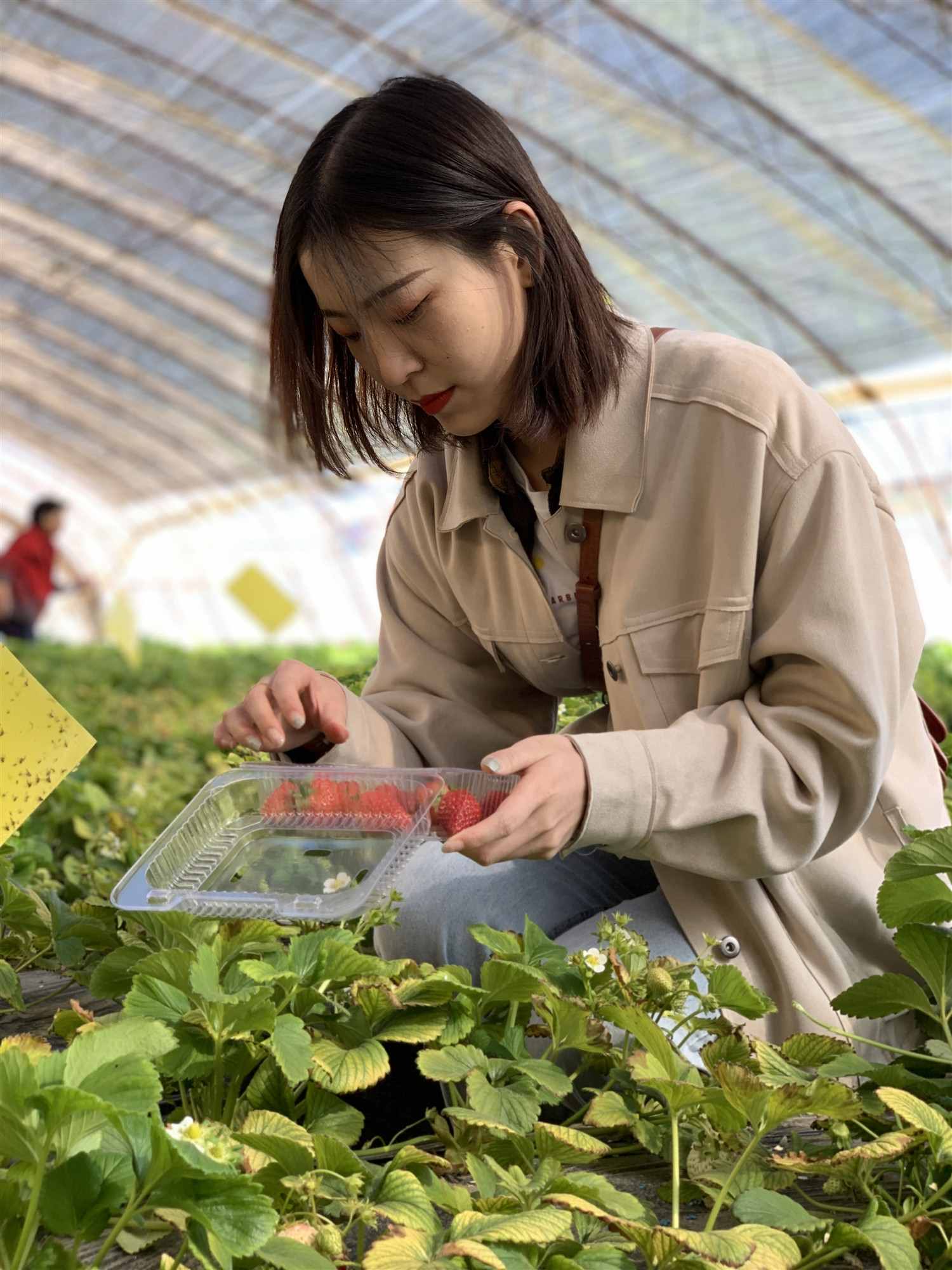走進大棚,棚內(nèi)生機勃勃,綠意盎然,溫暖的大棚內(nèi),枝蔓交錯的綠葉和鮮紅的草莓相映成趣,與室外一片蕭瑟反差強烈。在這里,還可以帶小朋友認識草莓苗、草莓花、草莓葉,看到草莓成熟的不同階段。