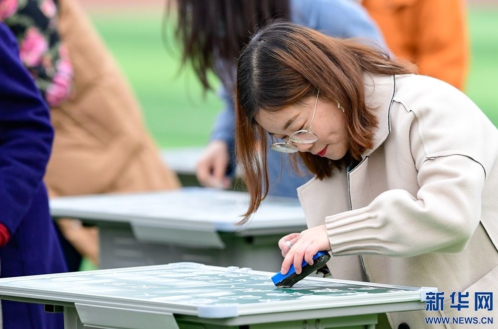 3月8日,呼和浩特市第三十八中學教師在板書比賽中。新華網發(fā)(王正 攝)